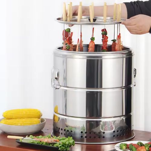 Stainless Steel Smokeless Hanging Skewers BBQ Charcoal Barbecue Grill
